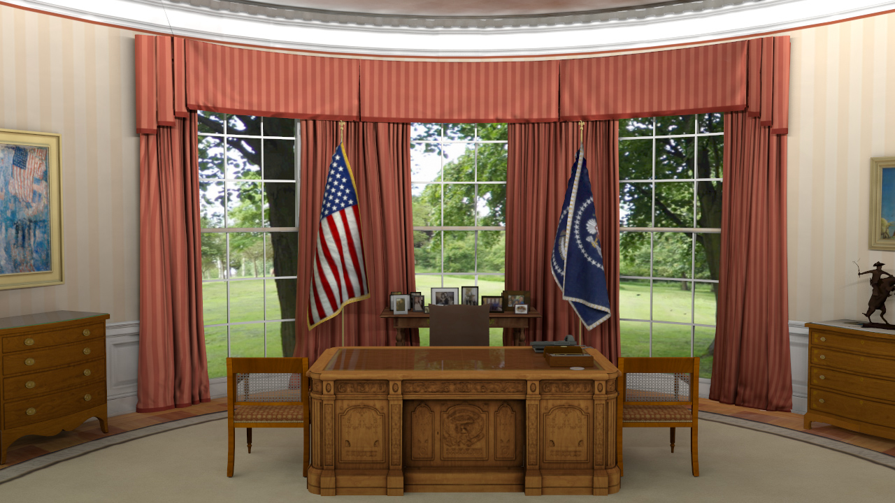 My rendition of the Oval Office was incorporated in the works "Too Soon?" and "Trump in VR 'Wide Awake'" (which was published to HTC Viveport in 2017) by studio MacInnes Scott.